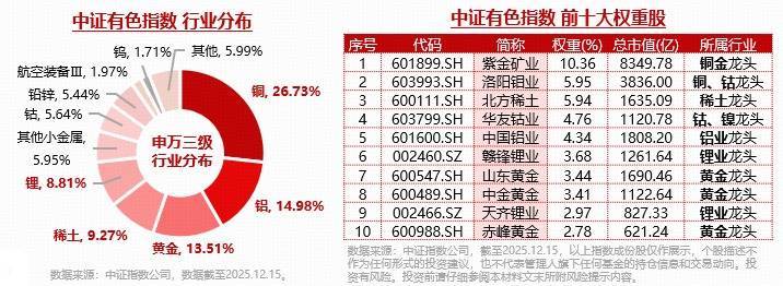 不同的有色金属,景气度、节奏与驱动点不一致,分化在所难免,如果看好有色金属,一个比较轻松的思路是通过全覆盖来更好地把握整个板块的贝塔行情。揽尽有色金属行业龙头的有色ETF华宝(159876)及其联接基金(A类:017140,C类:017141)标的指数全面覆盖铜、铝、黄金、稀土、锂等行业,相较投资单一金属行业,能够分散风险,适合作为投资组合的一部分进行配置。